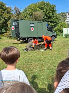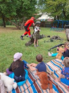 Dziękujemy serdecznie za wspaniałe spotkanie z żołnierzami, które odbyło się w naszym przedszkolu! Organizatorem pokazu był tata jednego z naszych przedszkolaków, któremu z całego serca dziękujemy za poświęcony czas i zaangażowanie. Podczas wizyty dzieci uczyły się zasad udzielania pierwszej pomocy, w tym sztucznego oddychania, ćwicząc na profesjonalnym fantomie oraz na swoich ulubionych misiach. Dowiedziały się również, jak prawidłowo reagować w nagłych wypadkach.